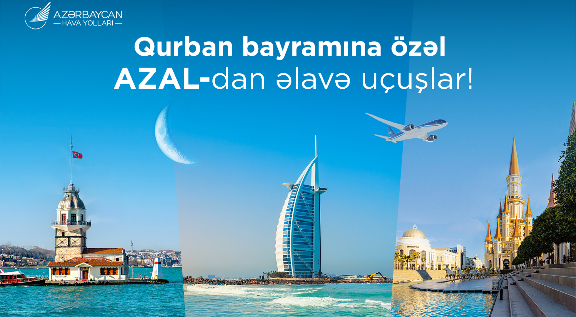 Belə ki, AZAL Bakıdan İstanbula iyun ayının 5-i, 6-sı, 8-i, Antalyaya iyunun 6-dan 12-nə kimi hər gün, Dubaya isə iyunun 4-ü, 5-i, 8-i və 9-u tarixlərində əlavə reys yerinə yetirəcək. Sözügedən şəhərlərə uçuşların artırılması sərnişinlərə bayram günlərində daha rahat səyahət imkanı yaratmaq məqsədini daşıyır.