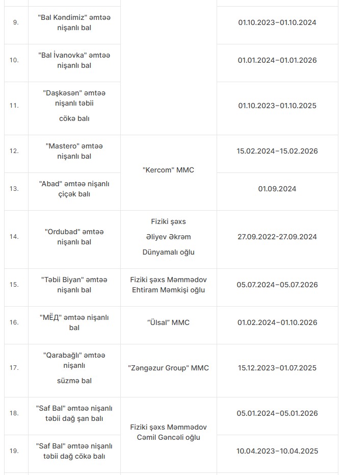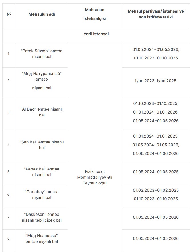 Uyğunsuzluq aşkarlanan bal məhsulları, istehsalçılar və istehlaka yararsız məhsul partiyaları ilə bağlı məlumatla aşağıdakı cədvəldə tanış ola bilərsiniz: