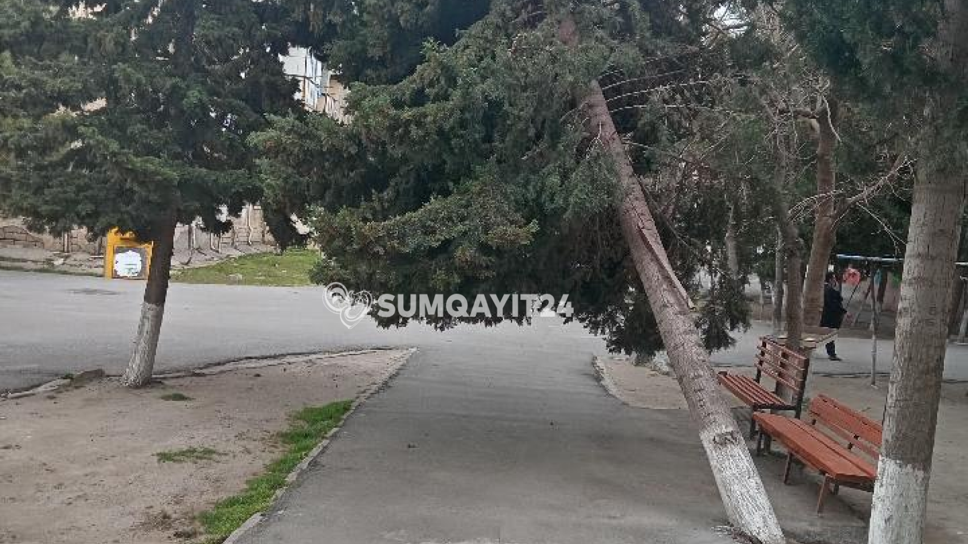 Sumqayit24.az-a müraciət edən vətəndaşların sözlərinə görə, birləşmiş məhəllədə (7-8 -12), 9 nömrəli binanın yaxınlığında iri gövdəli ağac aşmağa meyillidir.