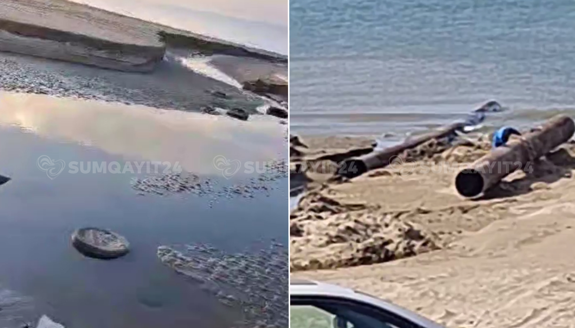 Sumqayit24.az-a müraciət edən yerli sakinlər bildirirlər ki, son bir neçə gün ərazidəki restoranların birindən mavi Xəzərə borular çəkilir. Onlar bu boruları çirkab suların dənizə axıdılması üçün quraşdırıldığını düşünürlər.