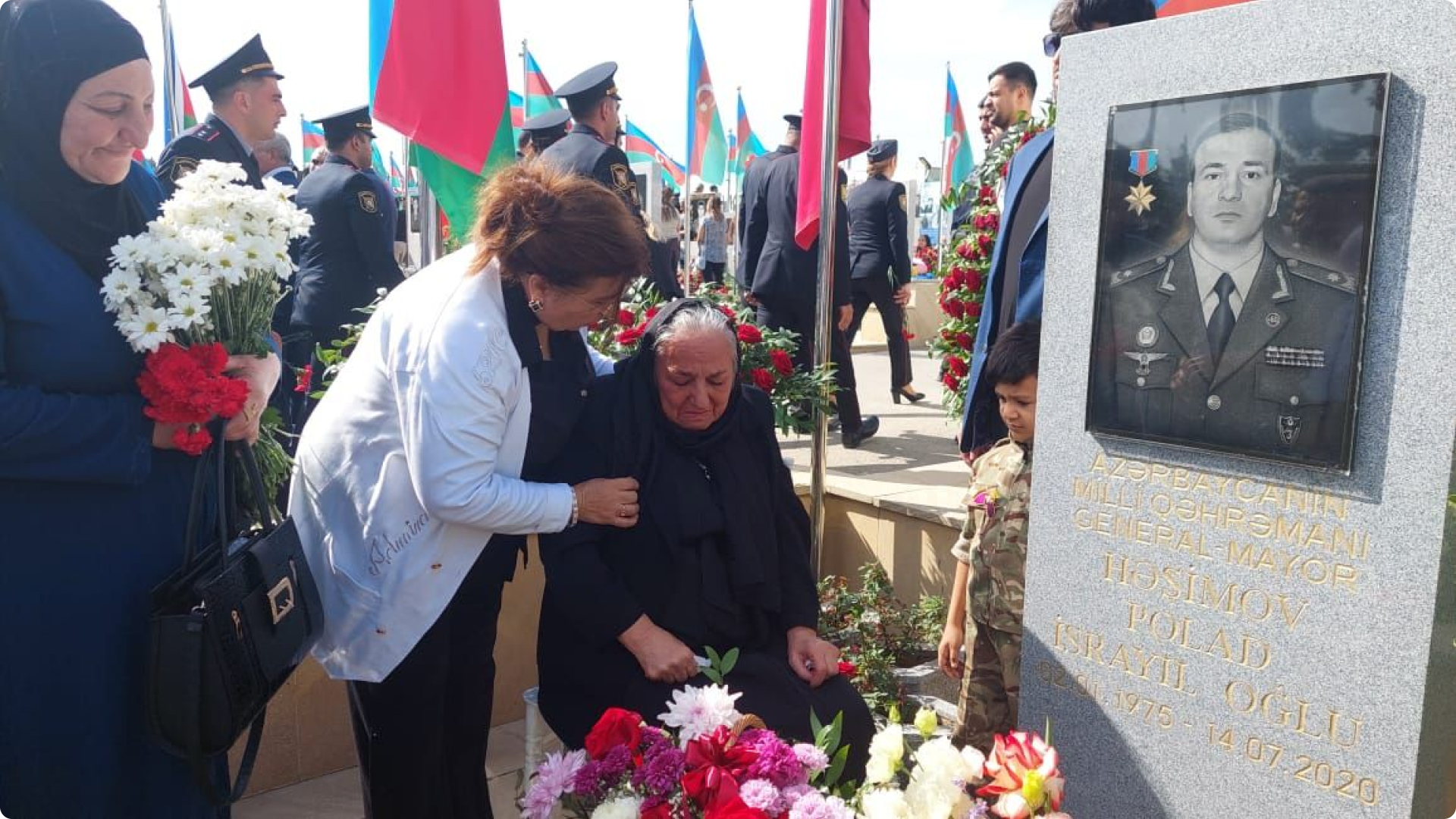 “Musavat”ın məlumatına görə, şəhid ailələri arasında Milli Qəhrəman Polad Həşimovun ailəsi də var. General-mayorun anası Səmayə Həşimova oğlunun məzarını ziyarət edib və şəhidlərə rəhmət diləyib.