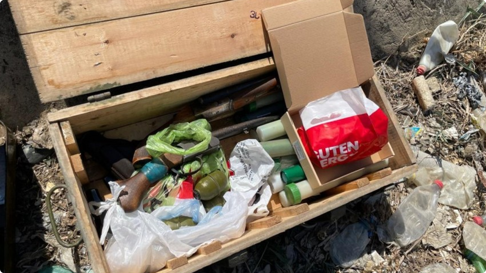 Hüquq-mühafizə orqanı əməkdaşları ilə birgə müvafiq təhlükəsizlik tədbirləri görüldükdən sonra hadisə yerinə baxış keçirilib. Bu zamanı tapılan sursatların döyüş tətbiqinə yararlı 2 ədəd PM 9 mm-lik Makarov tipli tapança, 16 mm-lik 2 ədəd ov tüfəngi, 4 ədəd F-1 əl qumbarası, 7 ədəd RQD5 əl qumbarası, 10 ədəd UZRQM2 partladıcısı, 69 ədəd 7x62 mm-lik kiçik çaplı mərmi, 17 ədəd 9x19 mm-lik kiçik çaplı mərmi, 9 ədəd OQ-7V silahdan atılan qəlpəli qumbara və 11 ədəd OQ-7PM qumbaranın barıt yükü olduğu müəyyən edilib.
