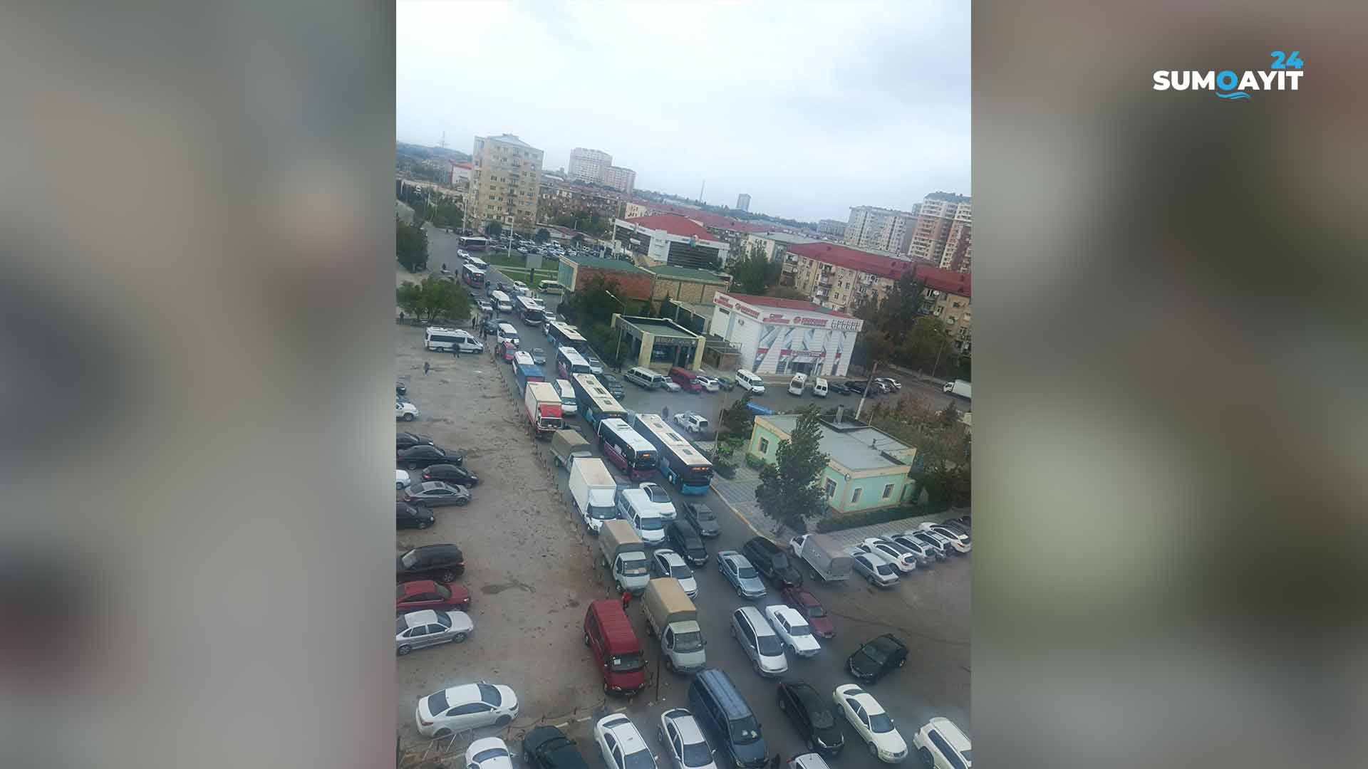 Məlumata görə, avtovağzalın önündə, Bakı küçəsindən Sülh küçəsində gedən yolda avtomobillərin hərəkəti iflic olub. Belə vəziyyət yarım saata yaxın davam edib və vağzalından "Sülh plaza"ya kimi uzanıb.
