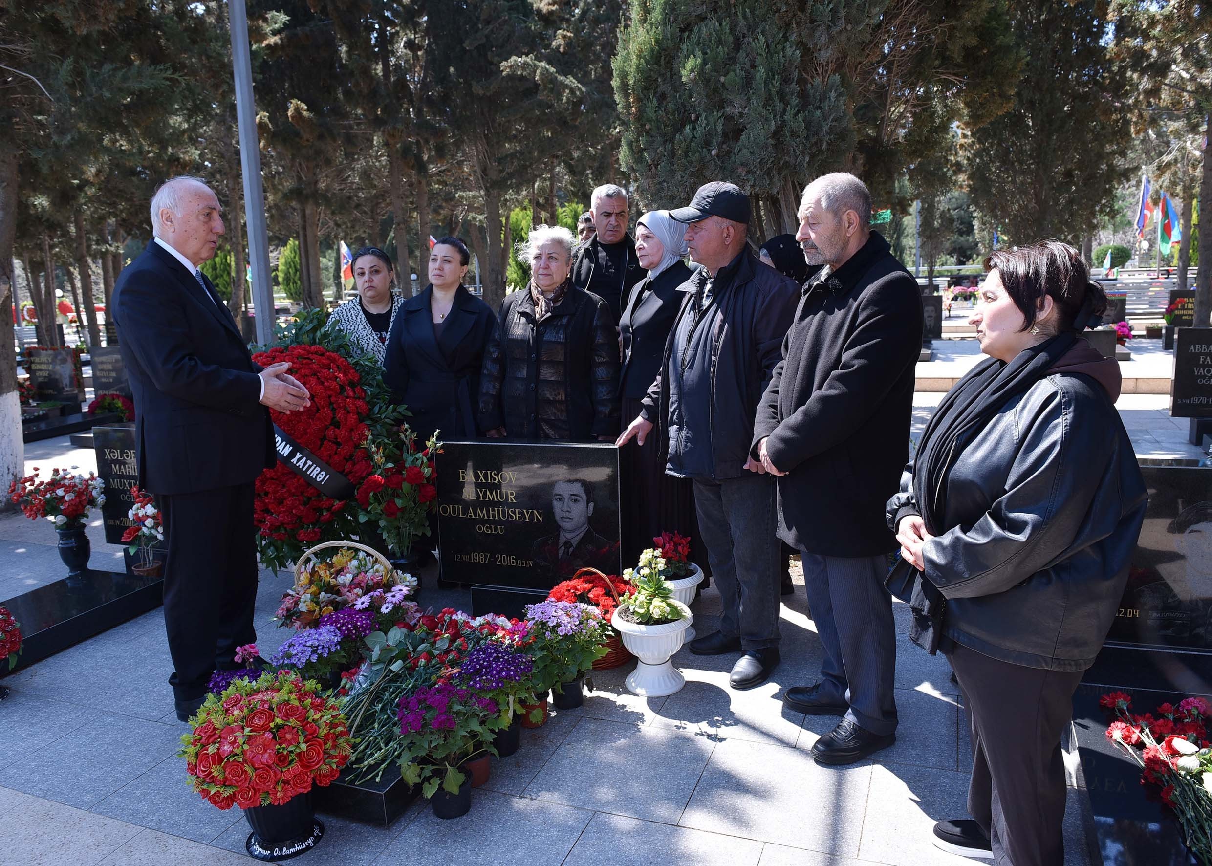 Daha sonra Vətən uğrunda canlarından keçmiş qəhrəmanlarımızın məzarları ziyarət olunaraq üzərlərinə tər çiçəklər qoyulub, əziz xatirələri dərin ehtiramla yad edilib.