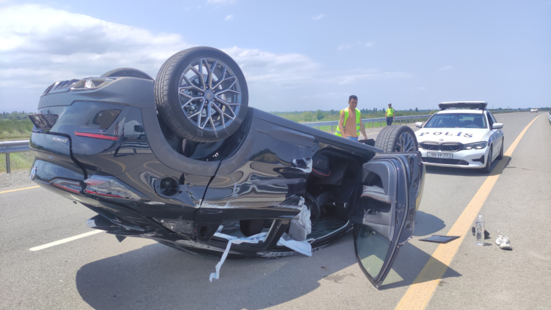 Maşında tək olan sürücü yüngül xəsarətlər alıb. Qəza yerinə Dövlət Yol Polisinin əməkdaşları cəlb olunub, yolda hərəkətin təhlükəsizliyi təmin edilib.