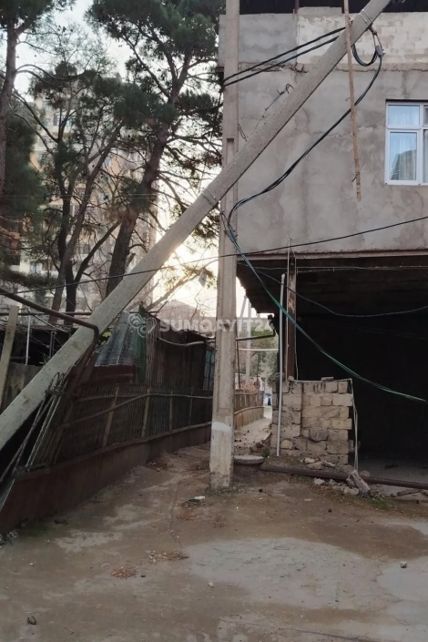 Fotolardan da göründüyü kimi, elektrik naqilləri ətrafa səpələnib. Elektrik dirəyinin də aşması an məsələsidir.
