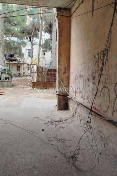Sumqayıtda yaşayış binalarının birinin həyətində təhlükəli vəziyyət yaranıb.