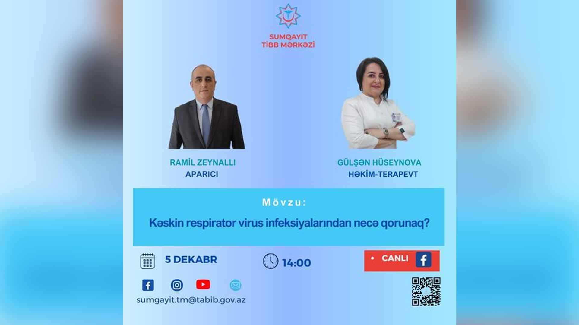 Yayım saat 14:00-da Sumqayıt Tibb Mərkəzinin Facebook səhifəsi üzərindən açılıb. Mövzu ilə bağlı suallar şərh bölməsində yazılmalıdır.