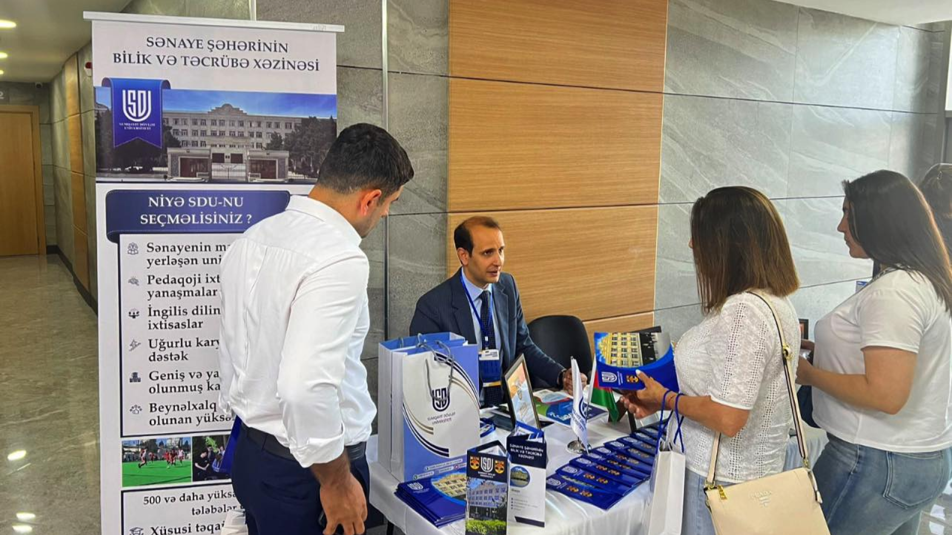 Ziyarətçilər SDU-nun stendində universitetin təqdim etdiyi ixtisaslar, tədris proqramları, maddi-texniki baza, təhsil haqqı, güzəştlər, təqaüd proqramları və digər imkanlar barədə ətraflı məlumat ala bilirlər.