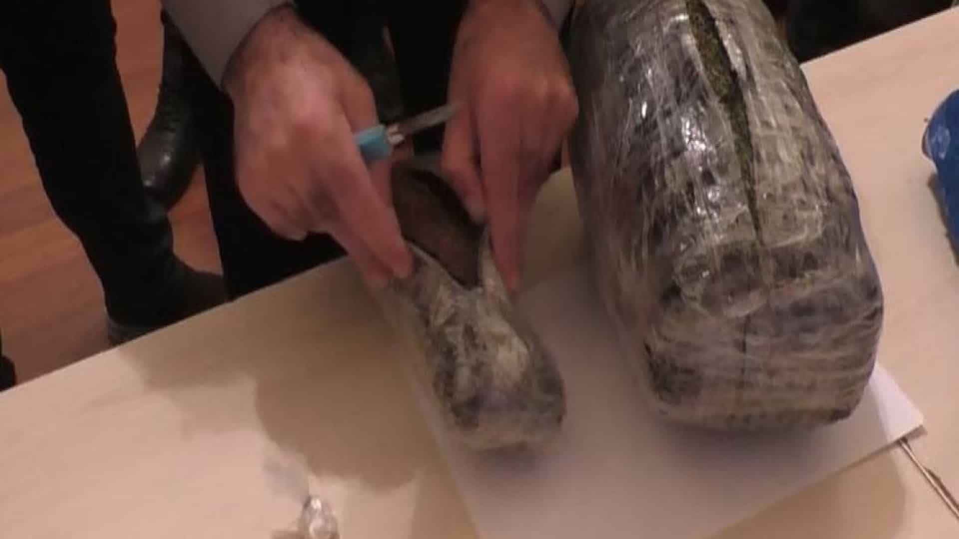 C. Əzizov Polis Şöbəsinə gətirilən zaman əlindəki qara rəngli çantadan 1 kq 11 qram heroin, 855 qram qurudulmuş marixuana, 15 ədəd metadon həbi aşkar olunaraq götürülüb.